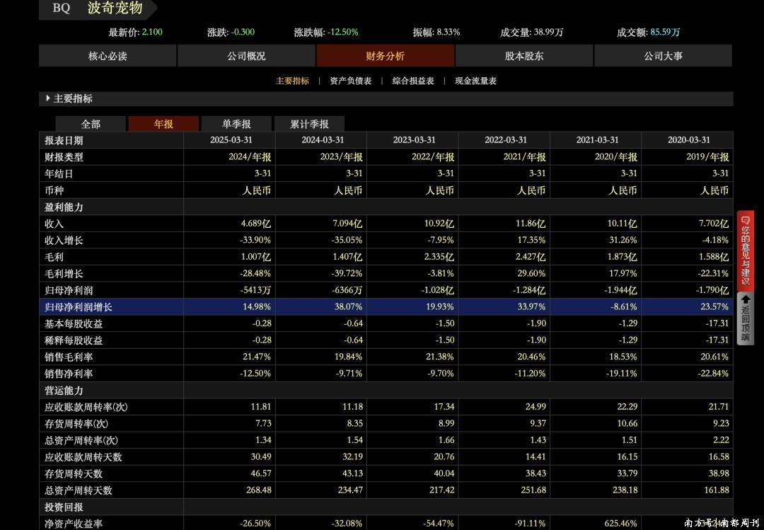 据了解,波奇宠物(BQ.US)是国内“宠物电商第一股”,于2020年登陆好意思股,上市以来遥远靠近牺牲态势,市值执续缩水。东方钞票数据骄贵,波奇宠物2020财年-2024财年齐处于牺牲态势,2024财年兑现收入4.69亿元,同比下滑33.9%,同期归母净利润为-5413万元,销售净利率为-12.50%。死亡12月12日收盘,波奇宠物总市值仅为1025万好意思元。