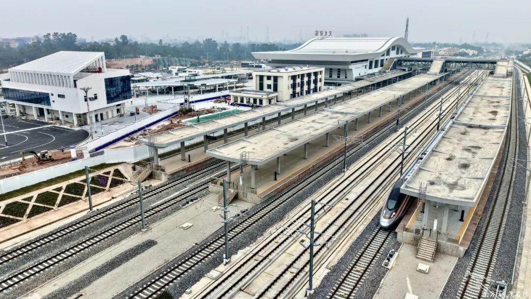 同属广湛高铁线上的马踏站,位于电白区马踏镇,为既有站房改扩建工程,车场鸿沟2台4线。该站以“仙东谈主飞马,踏印留痕”为打算理念,上前冲出的屋顶勾通立面动感的线条,模拟仙马起飞的态势,建筑合座形象澄清,体现了交通建筑的期间感与速率感。