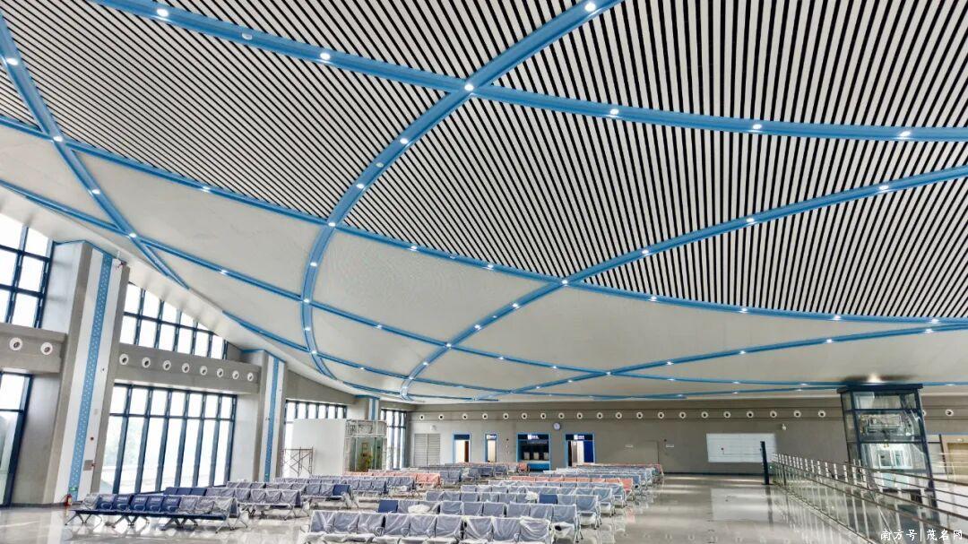 走进候车大厅,仿佛踏入一幅流动的海洋画卷。蓝白交汇的色彩簇新斯文,带来海风拂面般的舒适舒心。一楼吊顶的“星辰大海”波浪线条灵动舒展,二楼“渔光织梦”的弧形打算,既大气好意思不雅,又好意思妙呼应茂名领有“广东第一大渔港”的城市柬帖。坐在候车厅中,静静地朝窗外看去,弧形玻璃幕墙将天光与城市景况和缓纳入,既节能环保,又营造出通透豁达的空间境界。